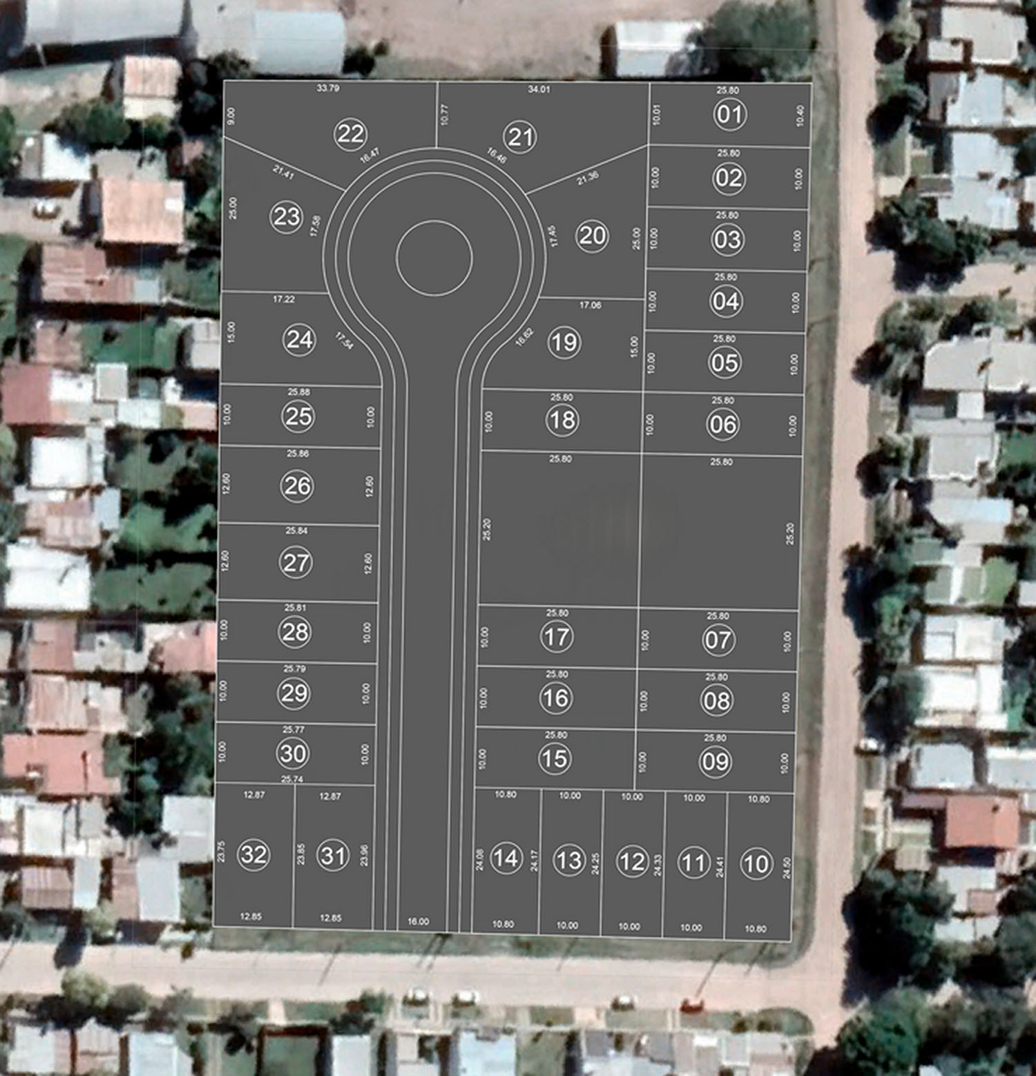El nuevo parcelario define un total de 32 lotes y 2 lotes destinados a espacio comunitario y espacio verde los cuales tiene un fácil acceso mediante calles pavimentadas.